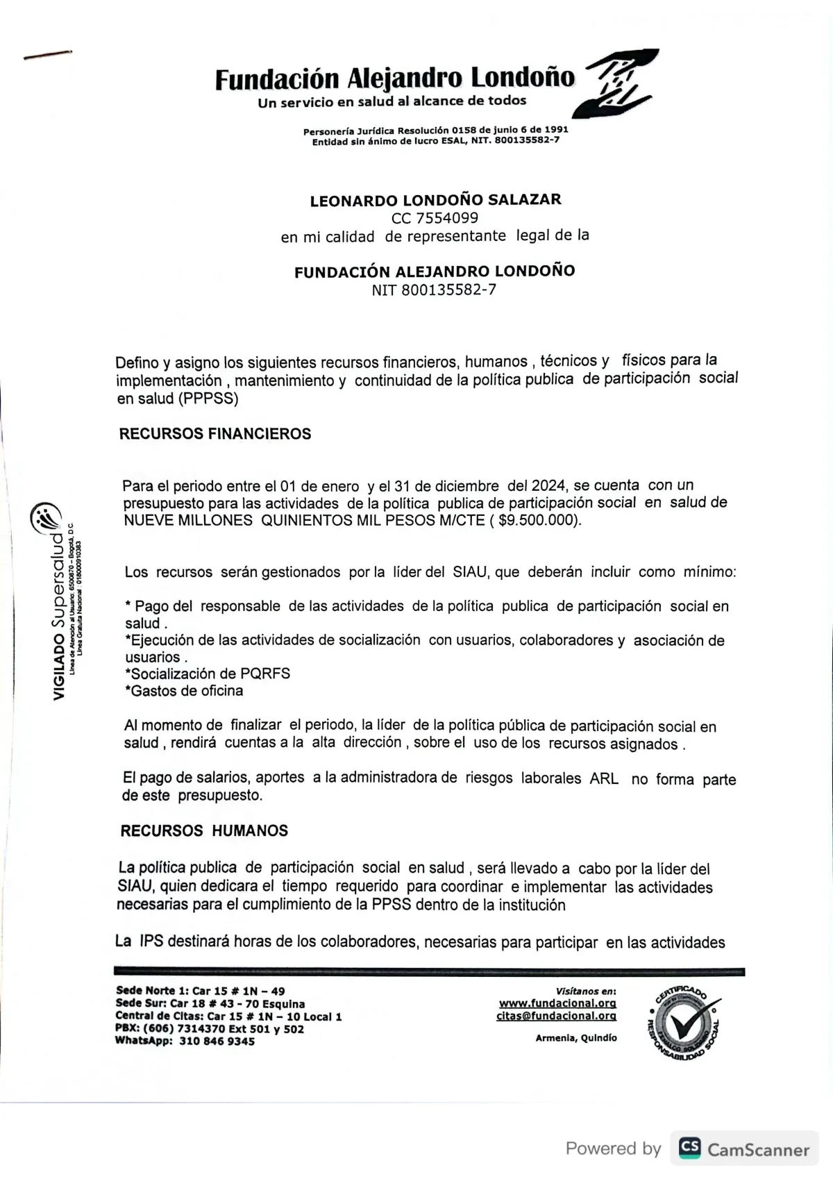 definición y asignación para la continuidad de la política publica de participación social en Salud (PPPSS)